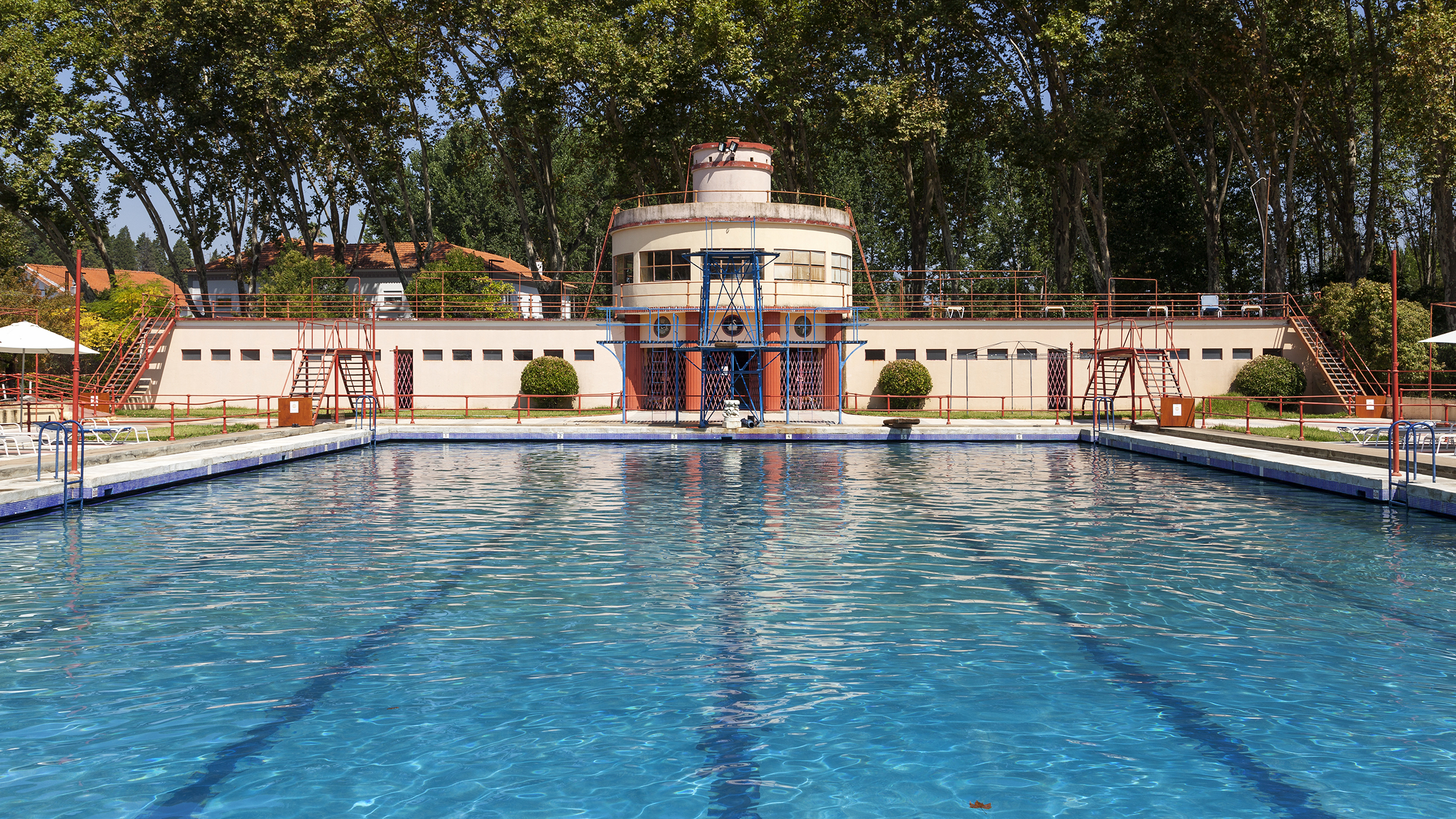 Interestingly, when it opened, the entire floor surrounding the pool was covered in sand, painstakingly brought from Praia de Mira. The sand was intended to give the pool the physical characteristics of a tranquil urban beach, similar to those found in those glamorous "Golden Twenties" on the Côte d'Azur. Because much of this sand ended up at the bottom of the pool, either due to the wind or involuntary transport by swimmers, within a few years the hotel was forced to abandon this initial romantic vision and replace the entire surrounding floor with ceramic tiles.